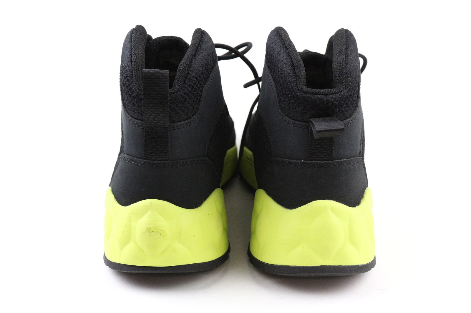 Keliose vietose yra nedidelių įspaudų. Ant kairiojo bato yra lipduko dėmė. Žr. pridėtas nuotraukas.