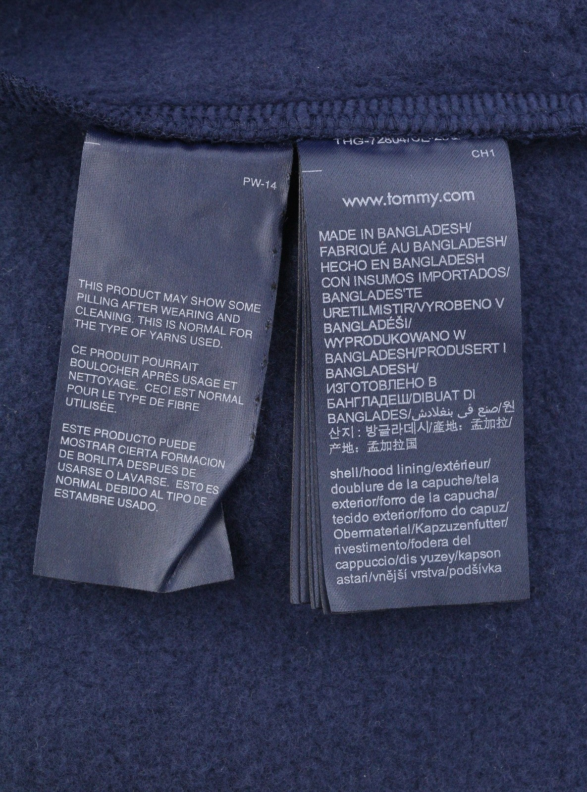TOMMY HILFIGER College Wash vyriškas džemperis su gobtuvu L tamsiai mėlynas kengūros kišenės megztinis