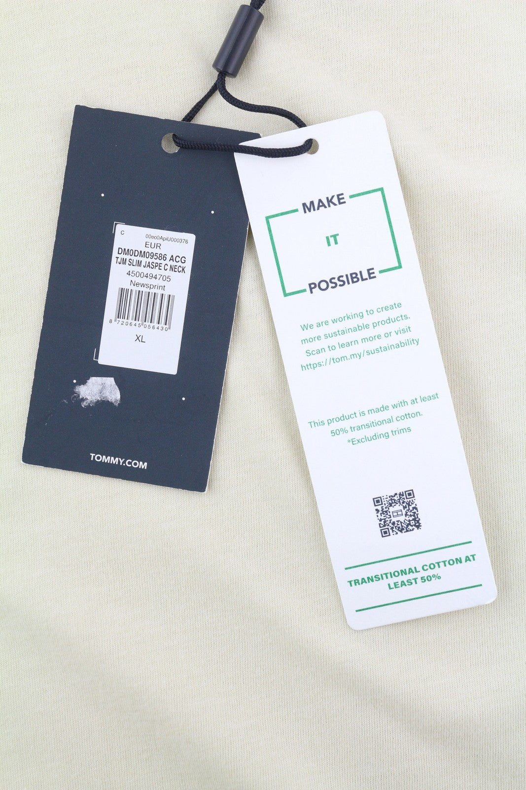 TOMMY HILFIGER TJM Slim Jaspe C Neck vyriški marškinėliai, XL dydžio, balti, trumpomis rankovėmis, su logotipu.
