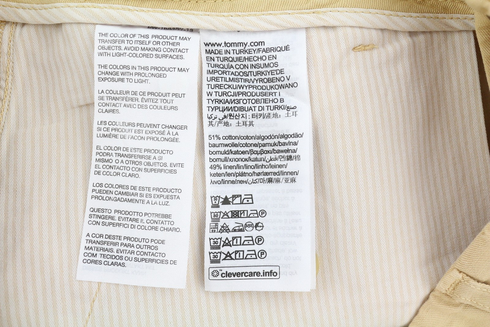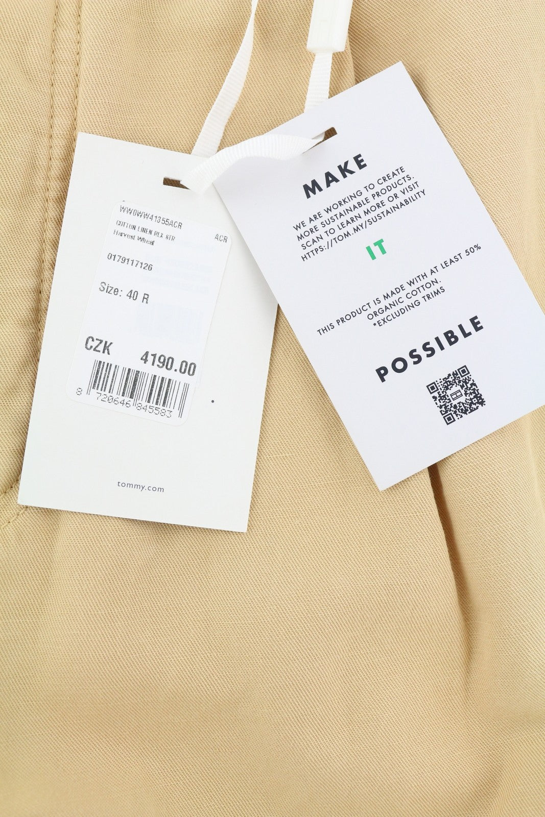 TOMMY HILFIGER moteriškos kelnės, 40 dydžio, rudos, lininio mišinio, platėjančiomis klešnėmis, klostuotos. Rekomenduojama mažmeninė kaina – 196 €.