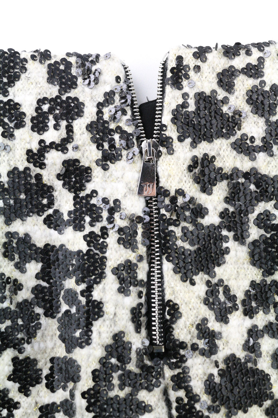 TRUSSARDI JEANS moteriškas sijonas, 40 dydžio, baltas, klostuotas, blizgučiais puoštas trumpas balioninis sijonas.