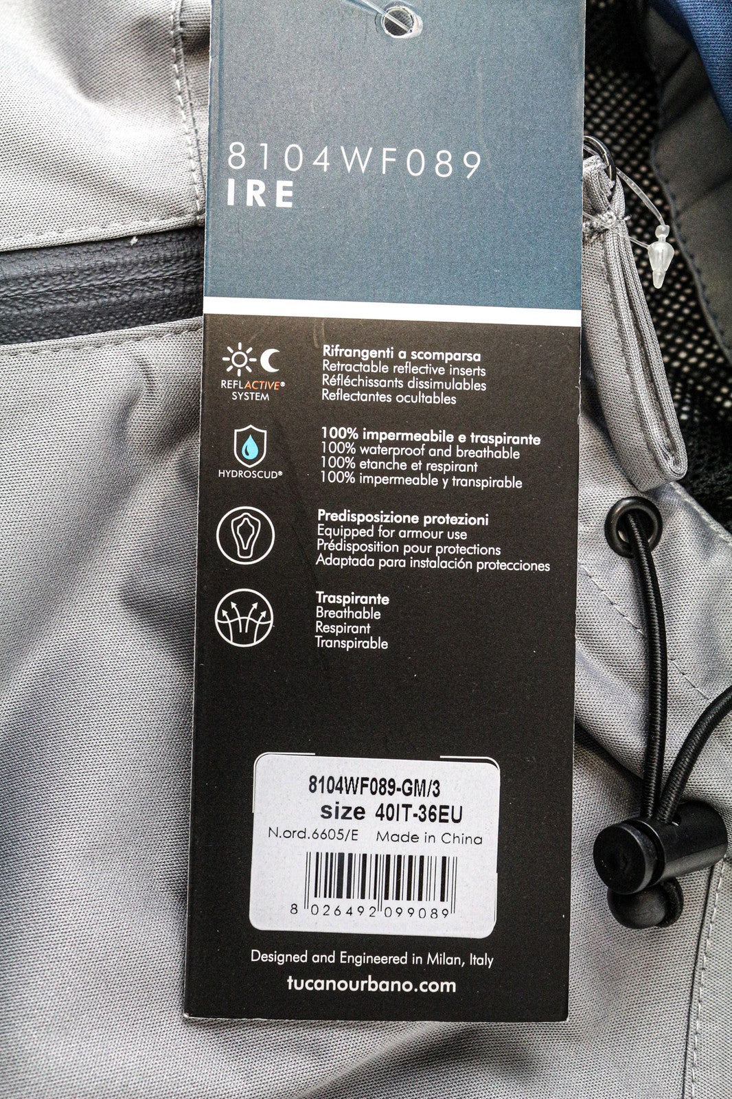 TUCANO URBANO Ire moteriška striukė S pilka, vandeniui atspari, lengva