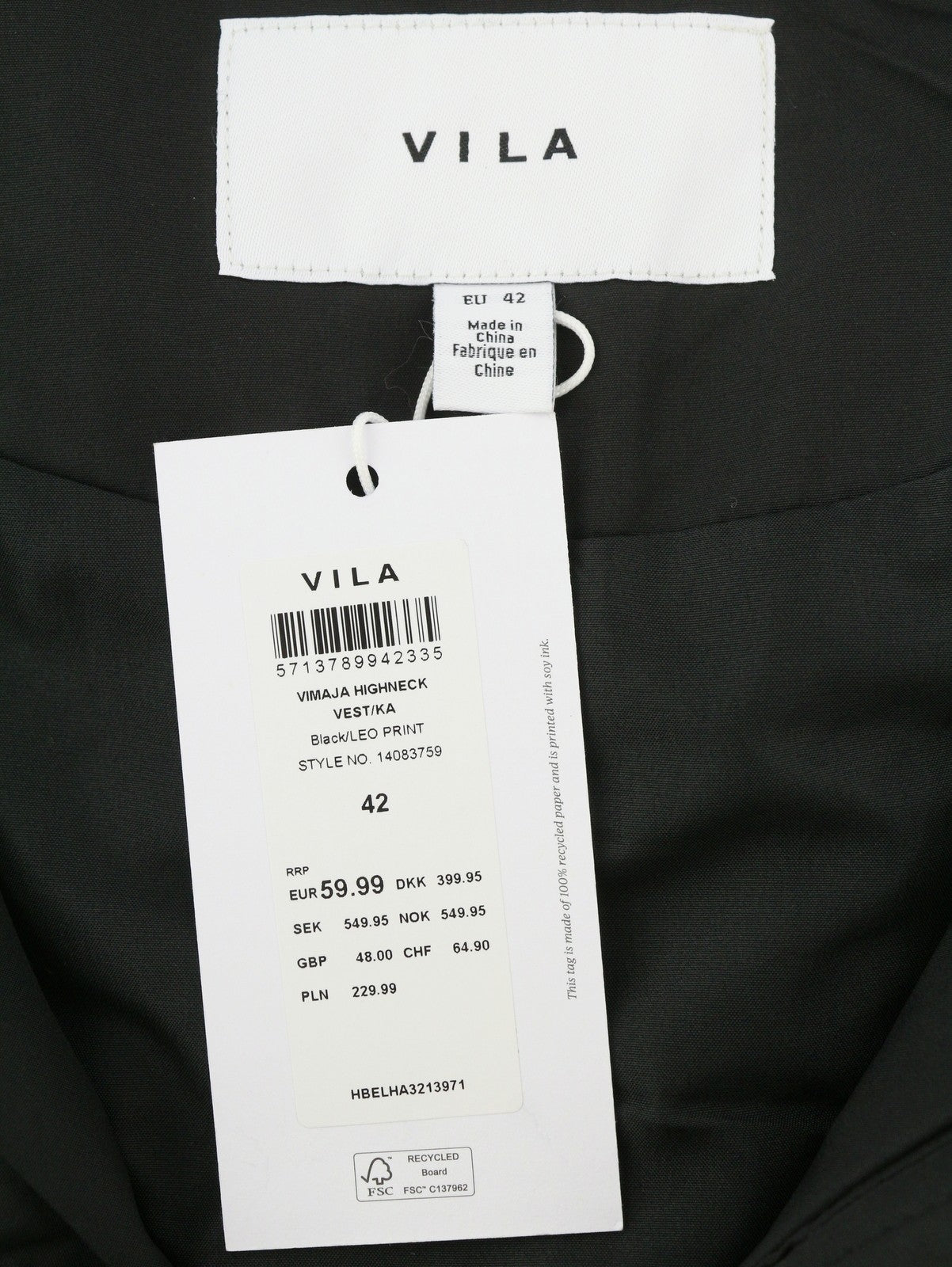 VILA Maja High Neck Women Waistcoat EU42 Black Leopard Print Quilted Padded