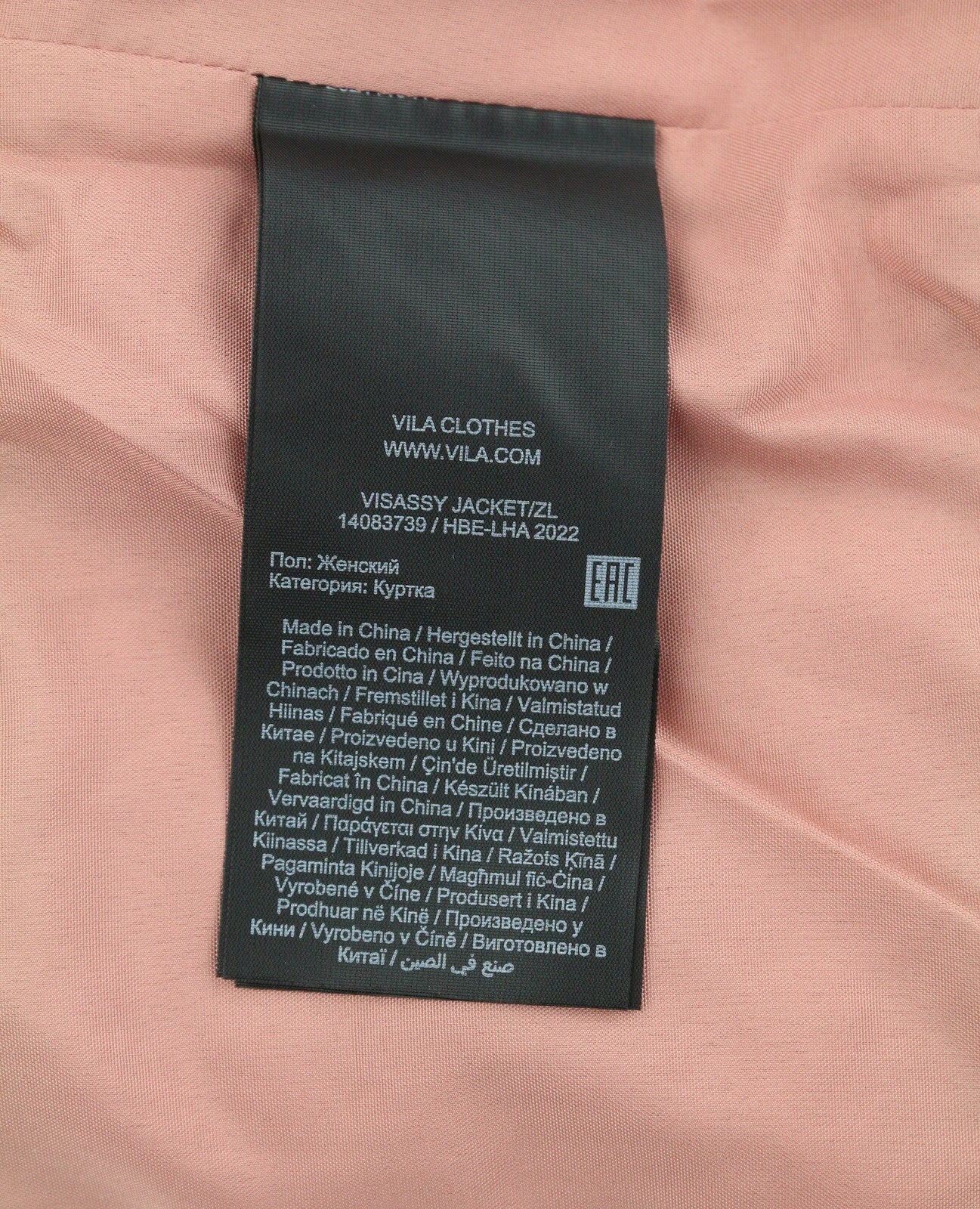 VILA Sassy Women Jacket EU42 Pink Quilted Padded Asymmetrical Zip Lightweight