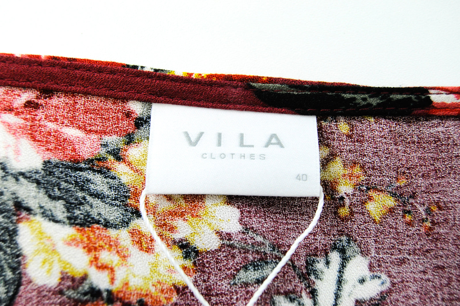 VILA Visaxa moteriška palaidinė EU40 raudona ilgomis rankovėmis, gėlėto rašto V formos iškirpte megztinis
