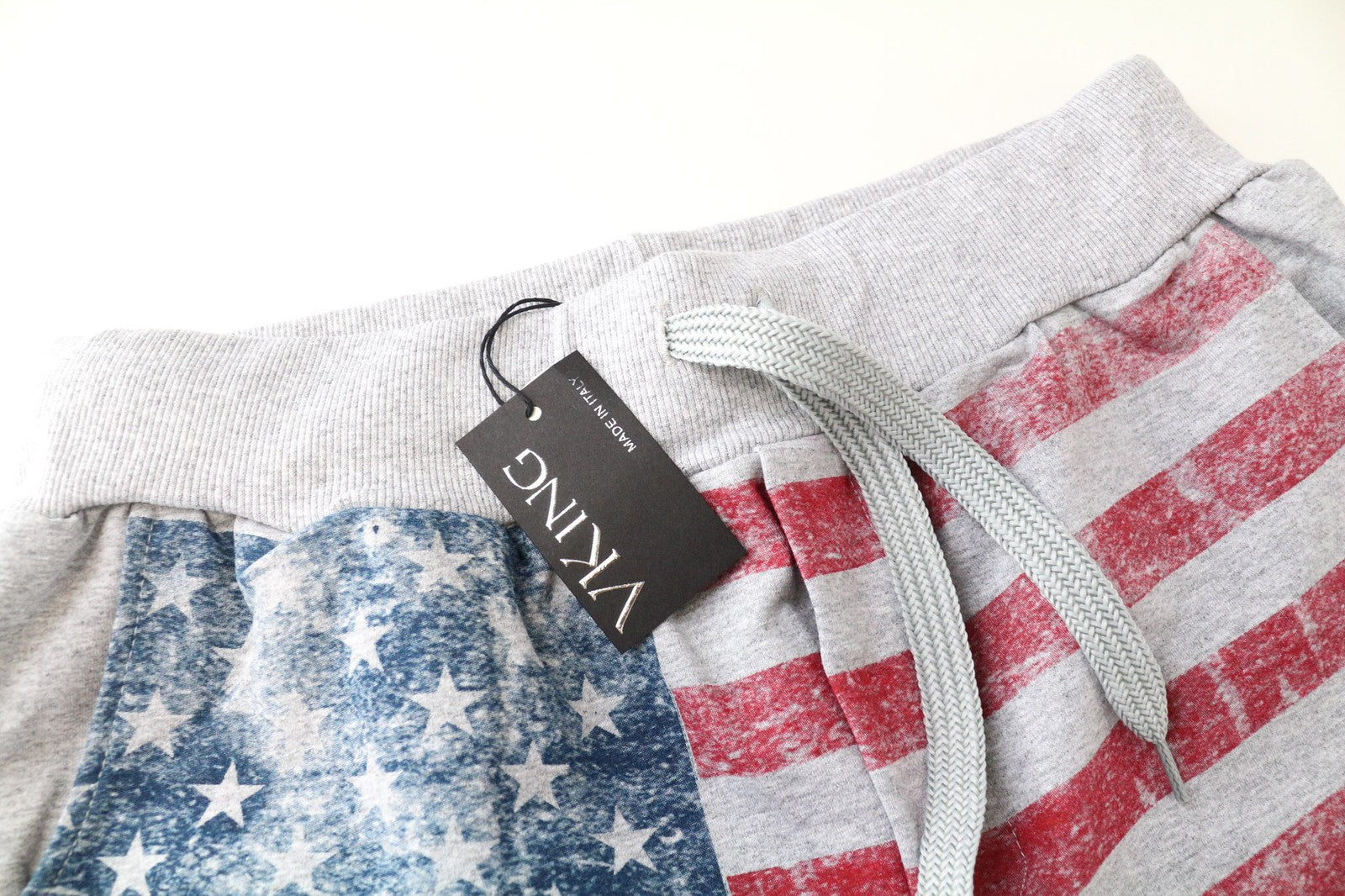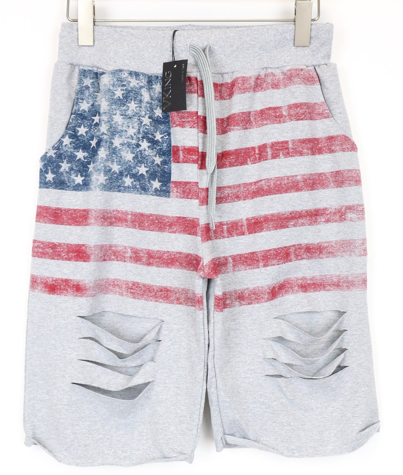 VKING Men's Shorts XL Grey Cotton Stretch Drawstring Pull-On Ripped Logo Faded