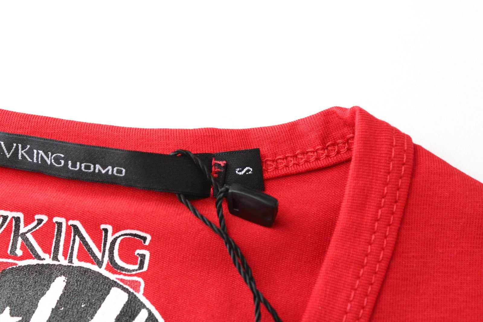 VKING Men's T-Shirt S Red Cotton Stretch Skull Graphic V-Neck Short Sleeve