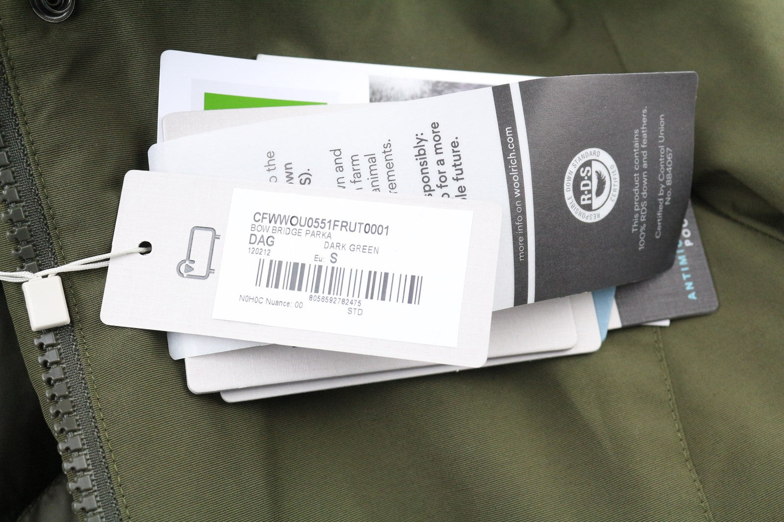 WOOLRICH Bow Bridge Parka moteriška striukė su pūkine striuke, S dydžio, su gobtuvu ir pamušalu bei užtrauktuku.