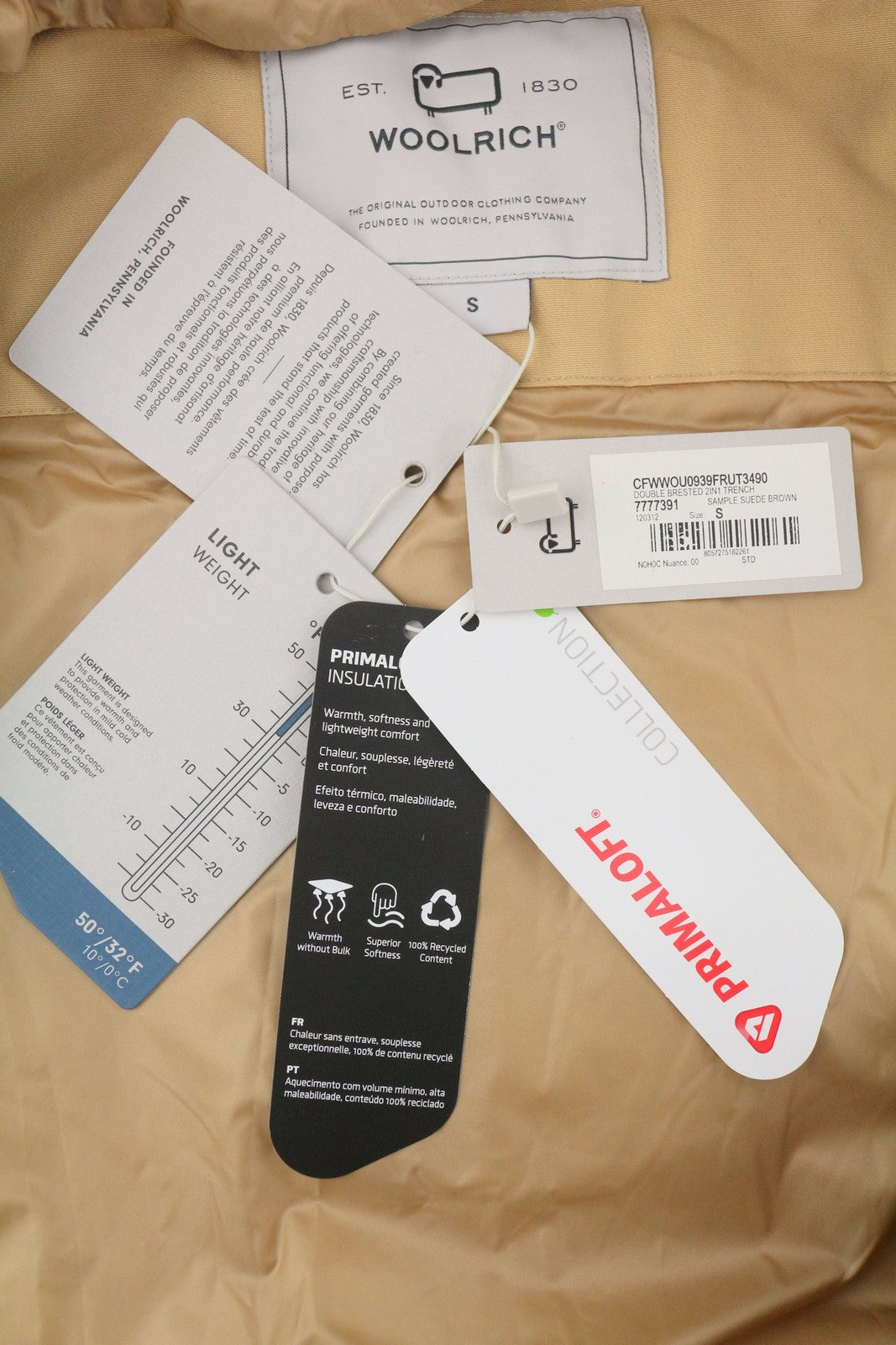 WOOLRICH dvieilis 2in1 moteriškas lietpaltis su gobtuvu S dydžio, smėlio spalvos, Primaloft PPR870