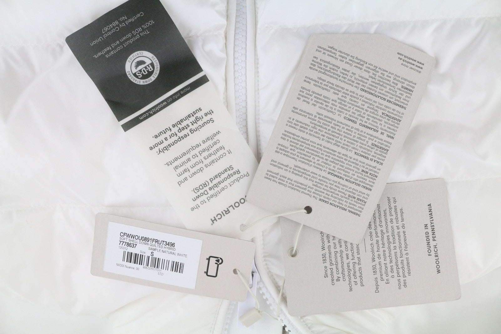 WOOLRICH minkšto apvalkalo pūkinė dygsniuota hibridinė moteriška striukė S, balta, su pūkų užpildu RRP520