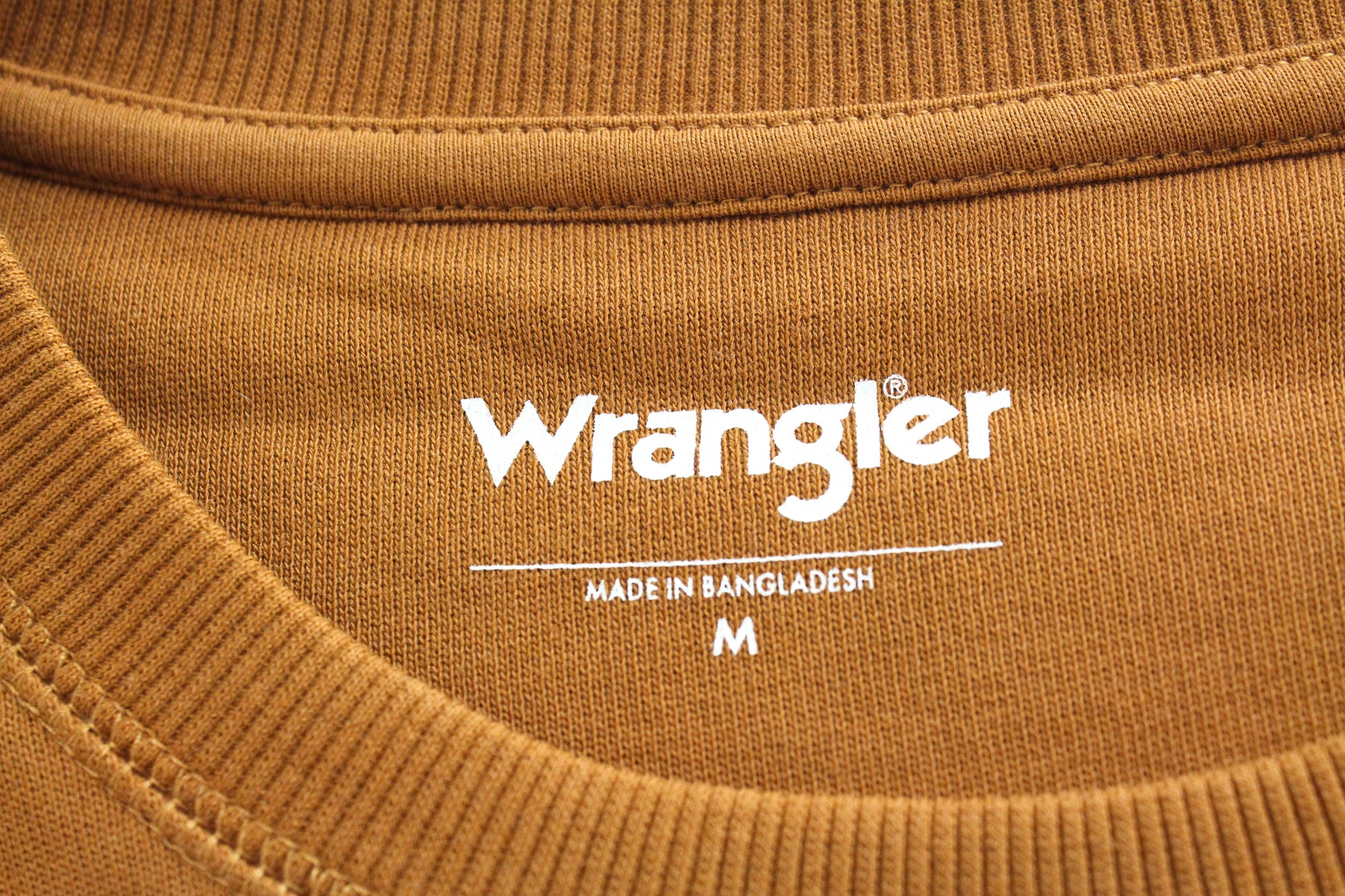 WRANGLER vyriškas M dydžio muskato spalvos vilnos džemperis su apvalia kaklo iškirpte ir logotipu