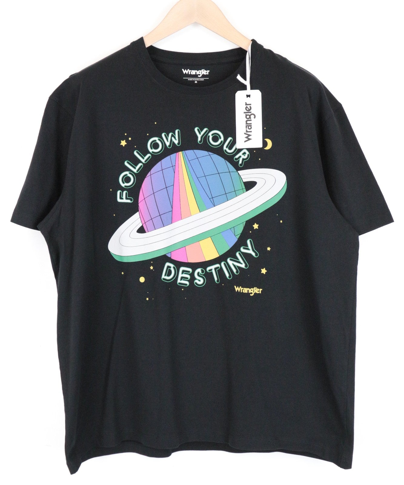 WRANGLER Men's M Washed Black Cotton Tee Short Sleeve Pullover Casual Print