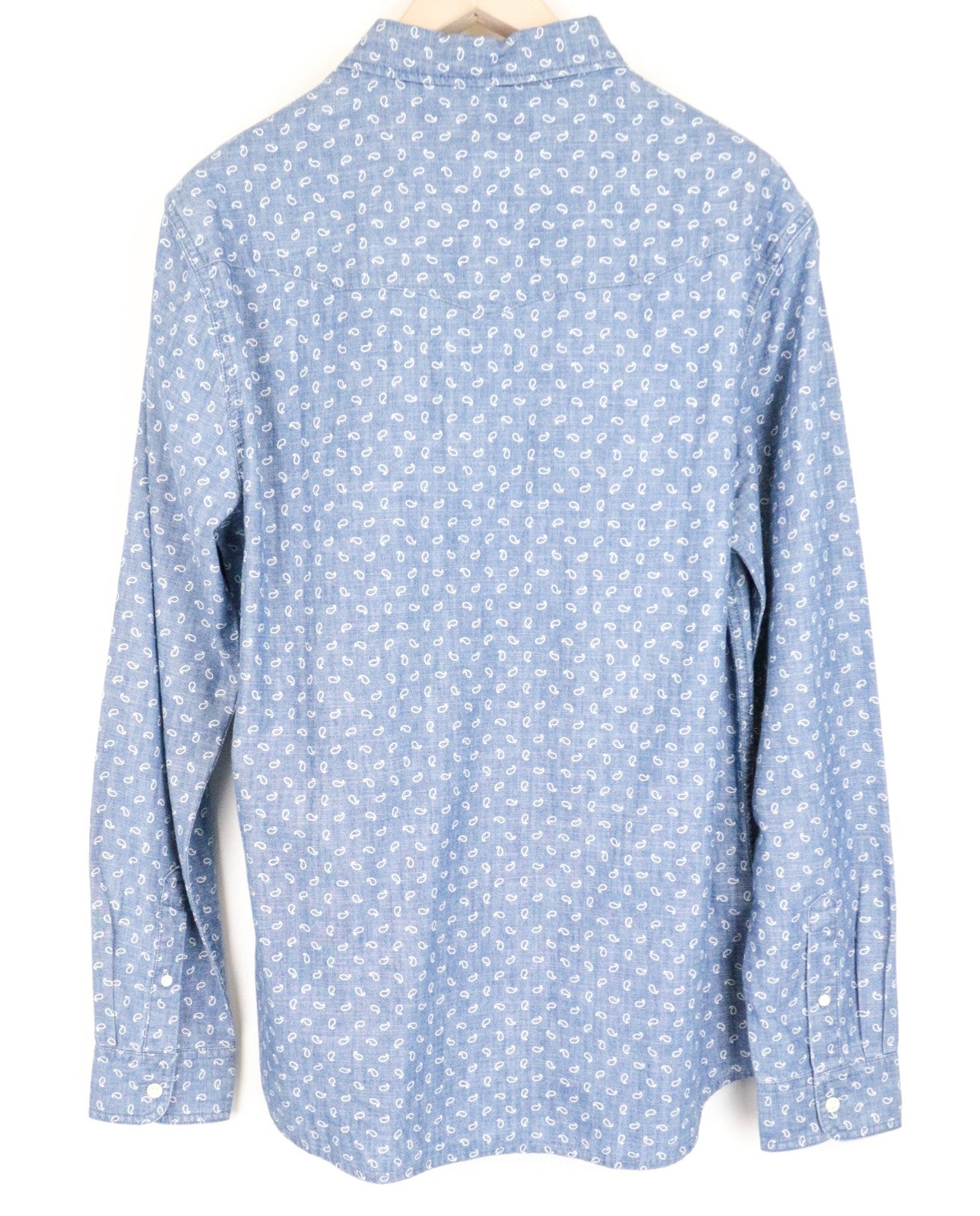 WRANGLER vyriški marškinėliai M mėlyni medvilniniai Paisley rašto ilgo ilgio marškinėliai su sagomis