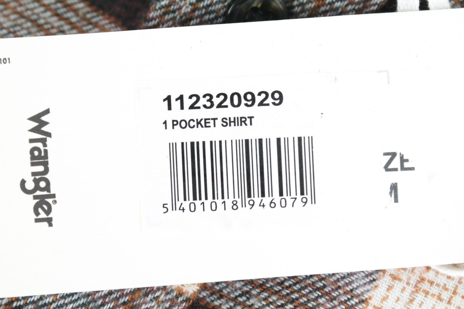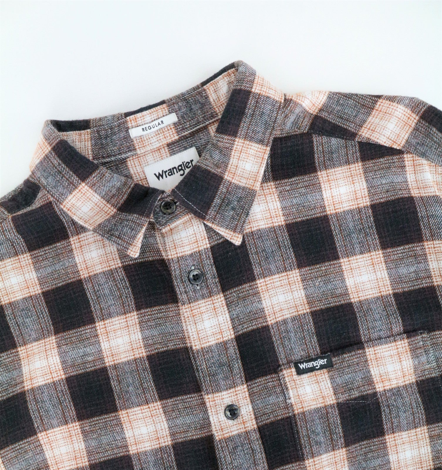WRANGLER vyriški marškinėliai M rudi pilki languoti ilgo ilgio grynos medvilnės flaneliniai marškinėliai