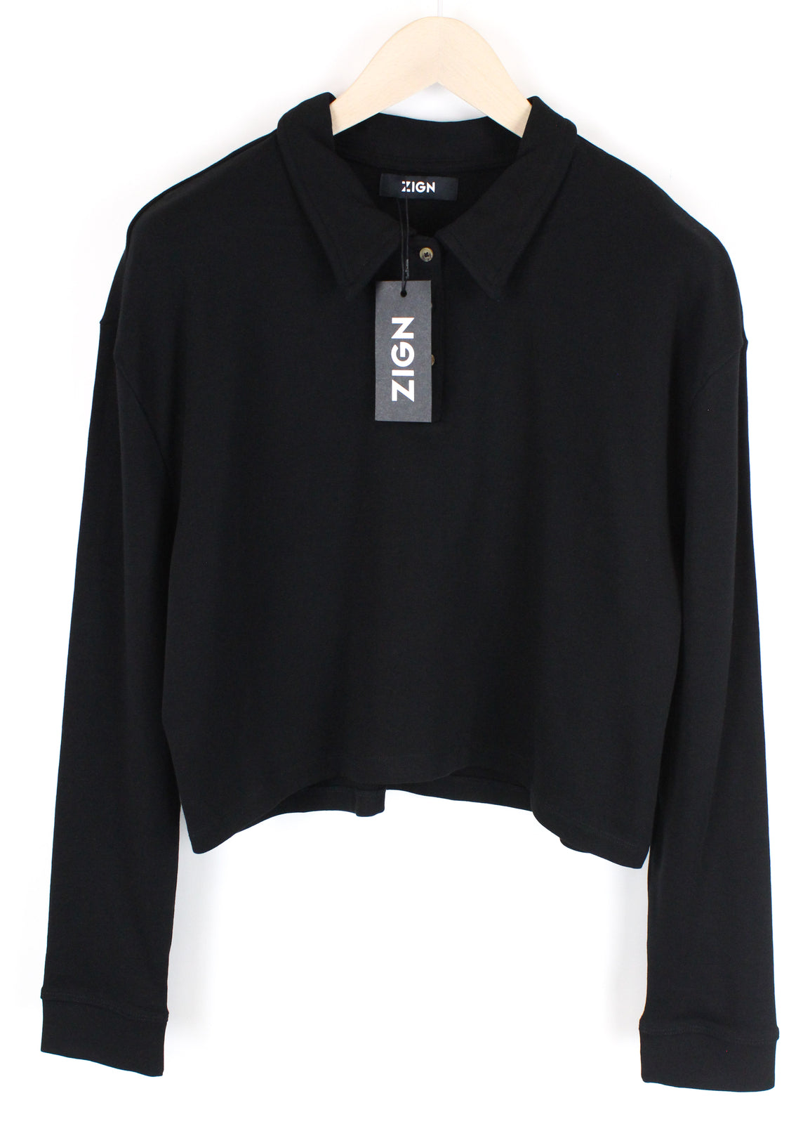 ZIGN moteriški marškinėliai XL dydžio, juodi, trumpinti polo marškinėliai su apykakle, tamprios medvilnės mišinio džersio medžiaga.